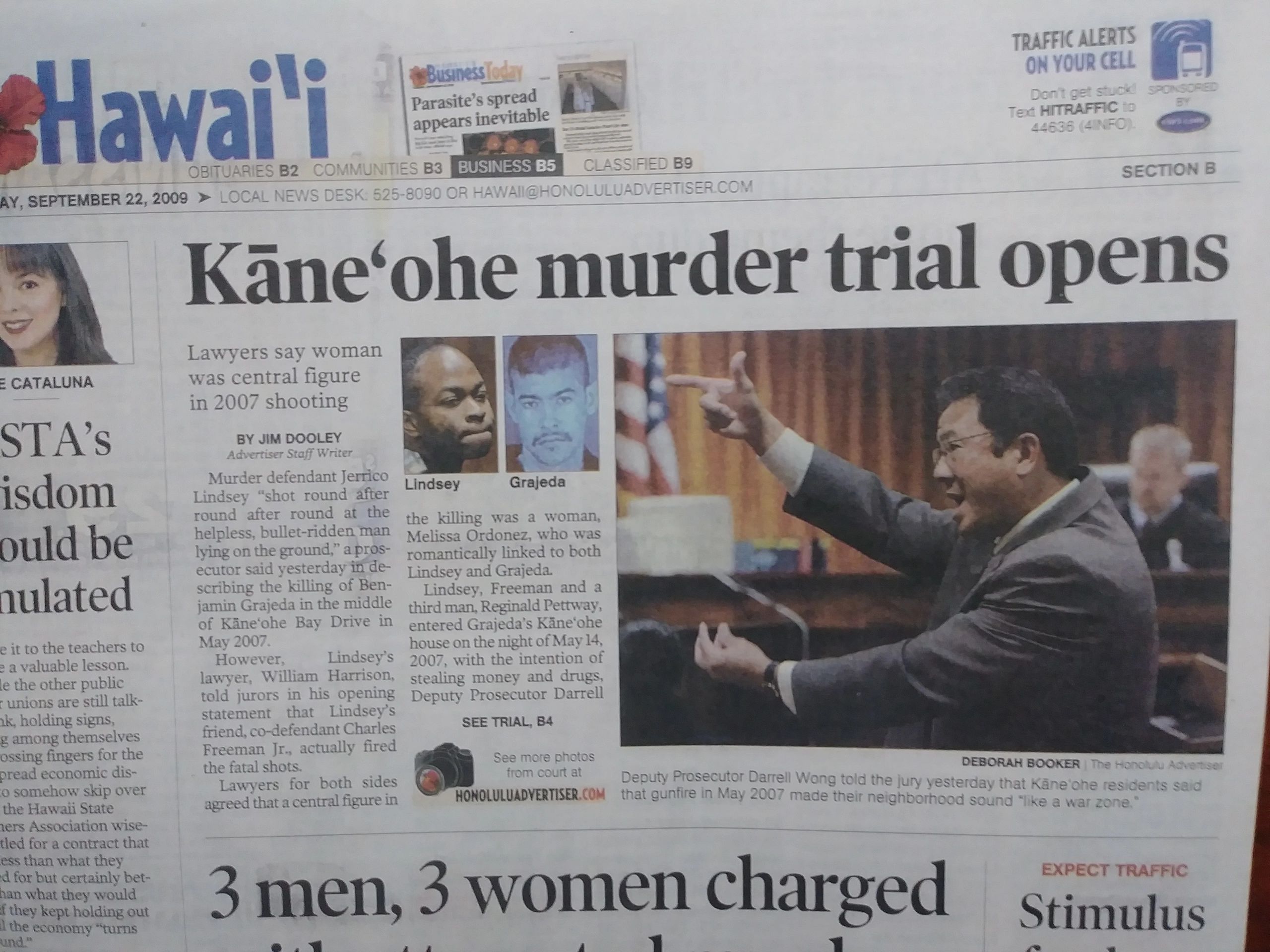 Kaneohe Bay Murder trial Practice Area: Violent crime Date: Jan 01, 2009 Outcome: guity verdicts Description: Murder involving out of state Defendants
