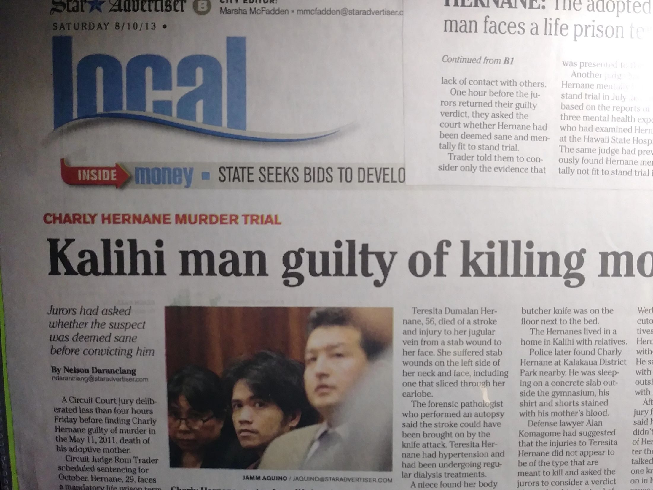 Practice Area: Violent crime Date: Jan 01, 2014 Outcome: guilty Description: Kalihi Boarding home burnt to ground by former tenant killing handicapped victim trapped in home.